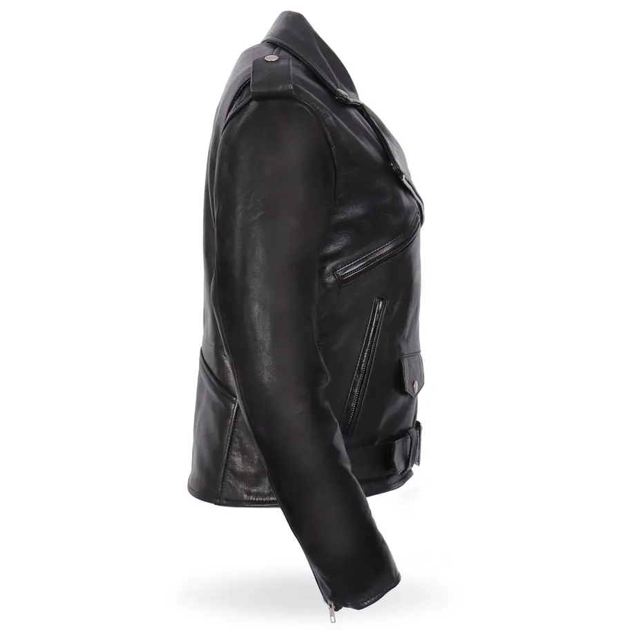 Ladies Black Premium USA Made Classic Motorcycle Style Leather Biker Jacket